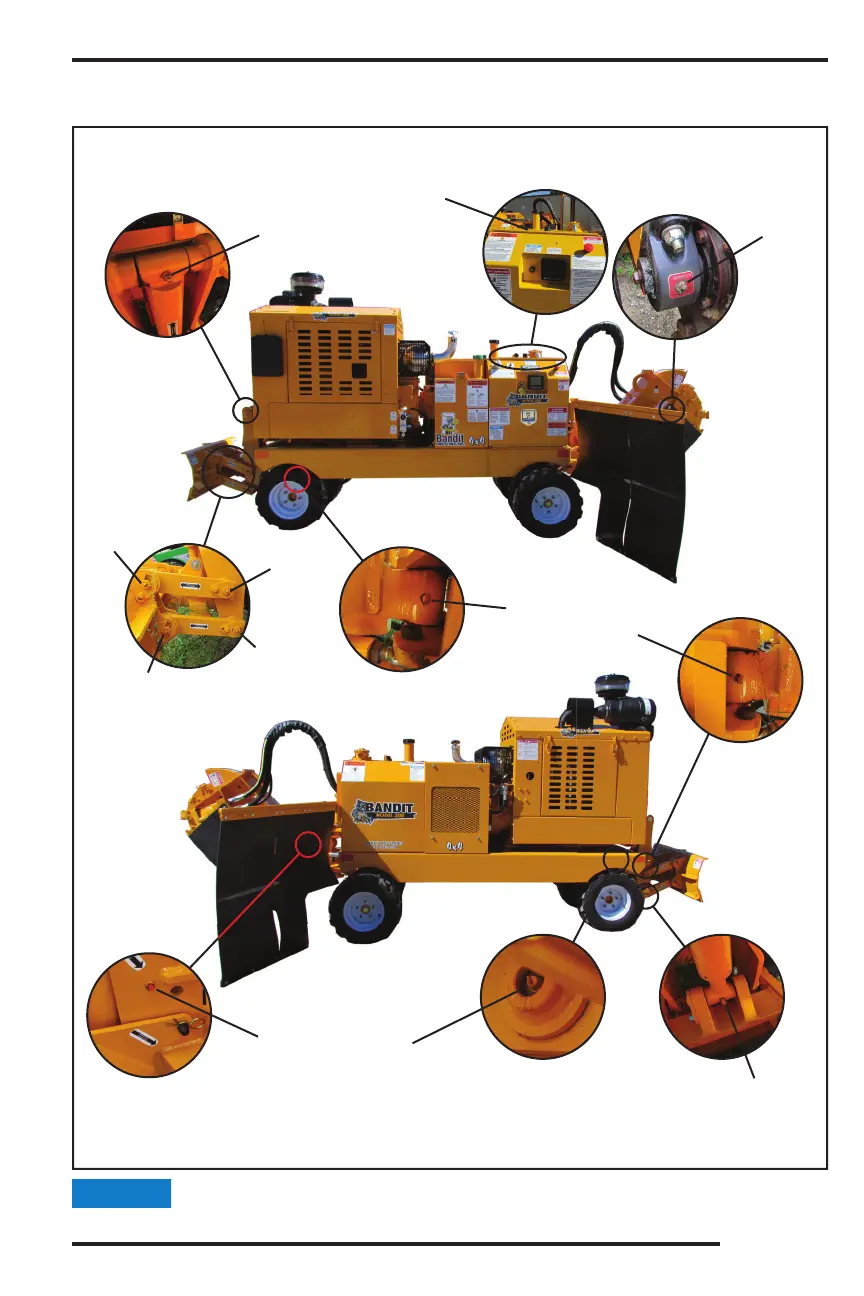 Lubrication point instructions are described on the machine, in the Lubrication & Coolant