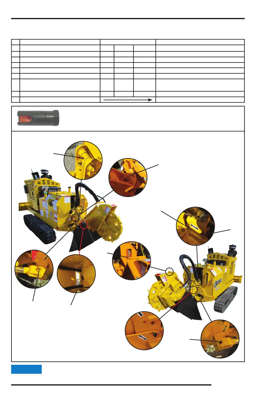Lubrication point instructions are described on the machine, in the Lubrication & Coolant