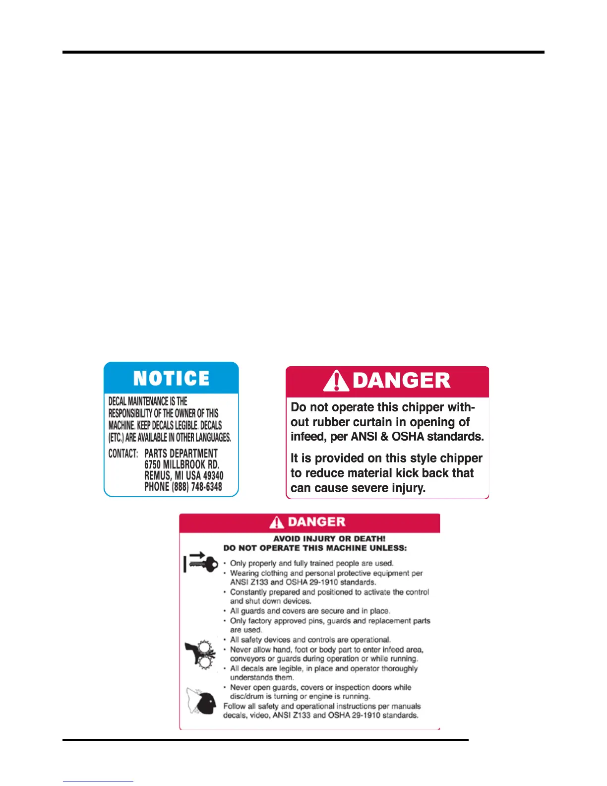 It is very important that all decals remain in place and in good condition on your machine. Please follow the