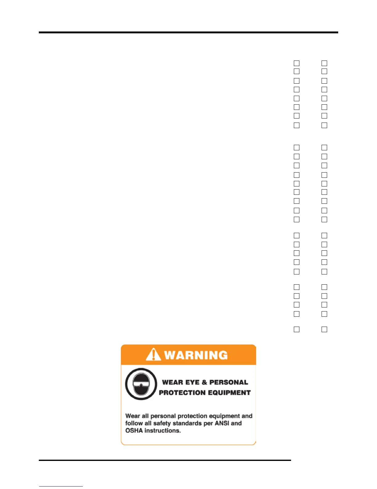 26) Wear all applicable safety equipment: hard hat, face shield, gloves, eye