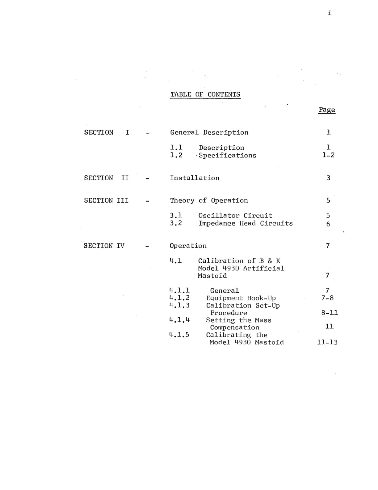 B&K 230 - Table of Contents