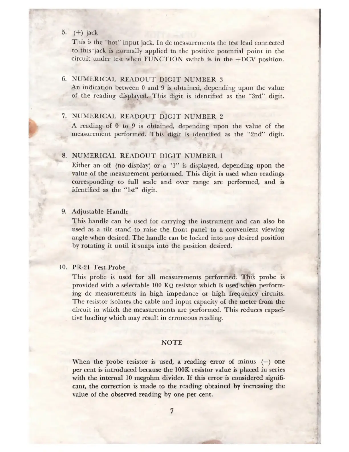 B&K 281 - Positive Input Terminal (+); Third Readout Digit; Second Readout Digit; First Readout Digit