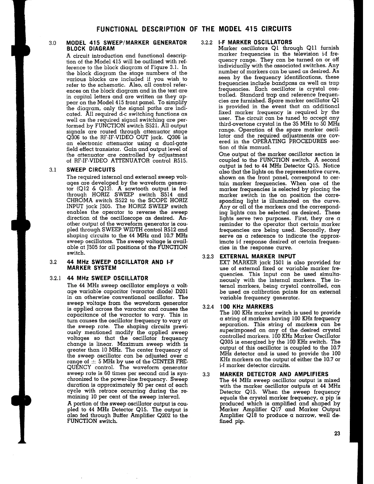 3.0 MODEL 415 SWEEP/MARKER GENERATOR