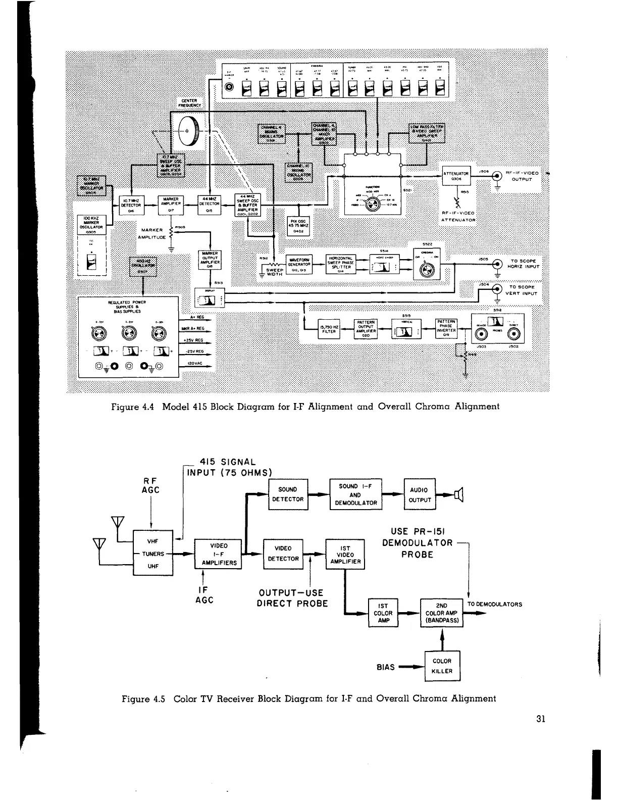 Figure 4.4 Model 415 Block Diagram for I-F Alignment and Overall Chroma Alignment