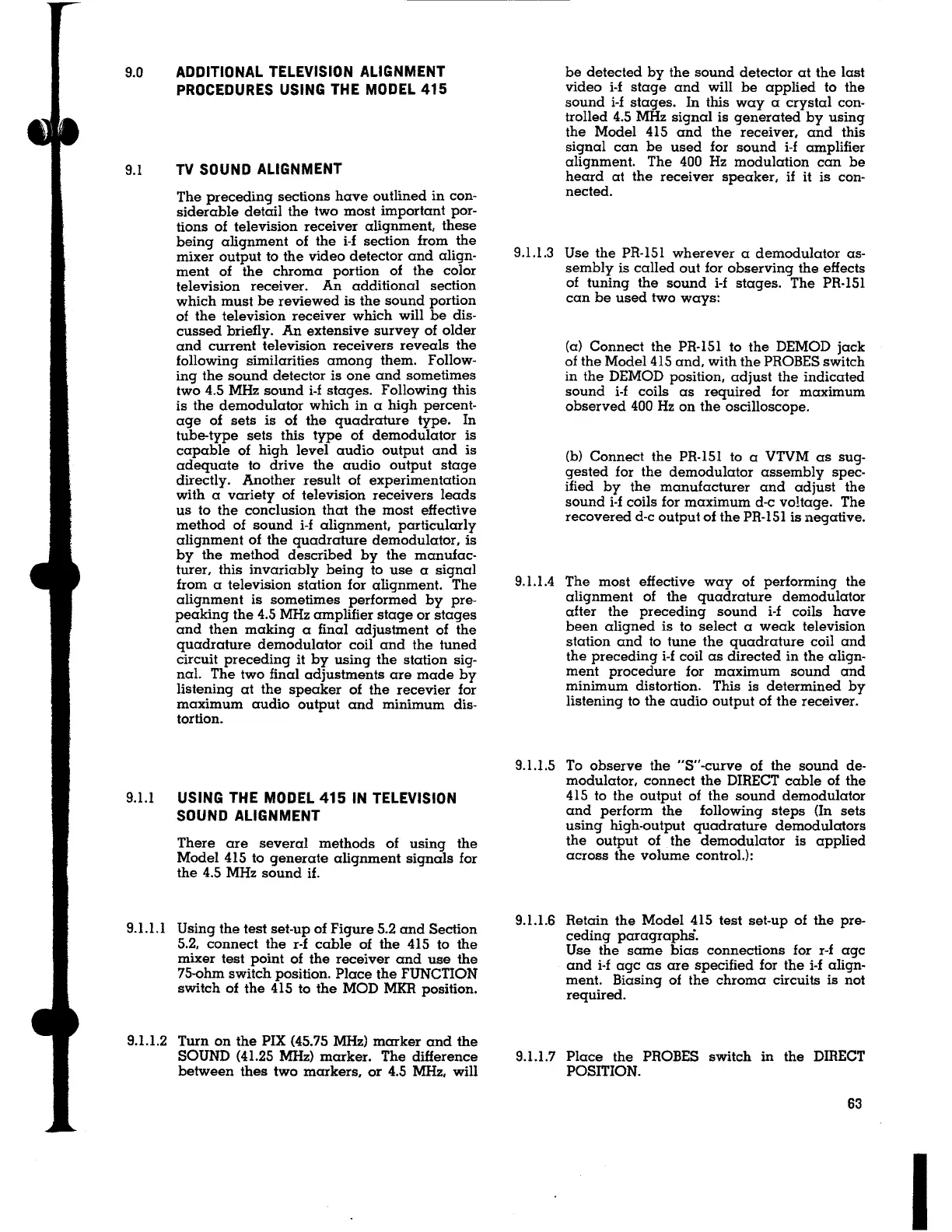 9.1.1 USING THE MODEL 415 IN TELEVISION