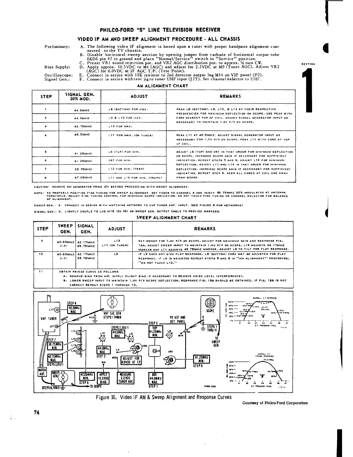 Figure 16, Video IF AM & Sweep Alignment and Response Curves