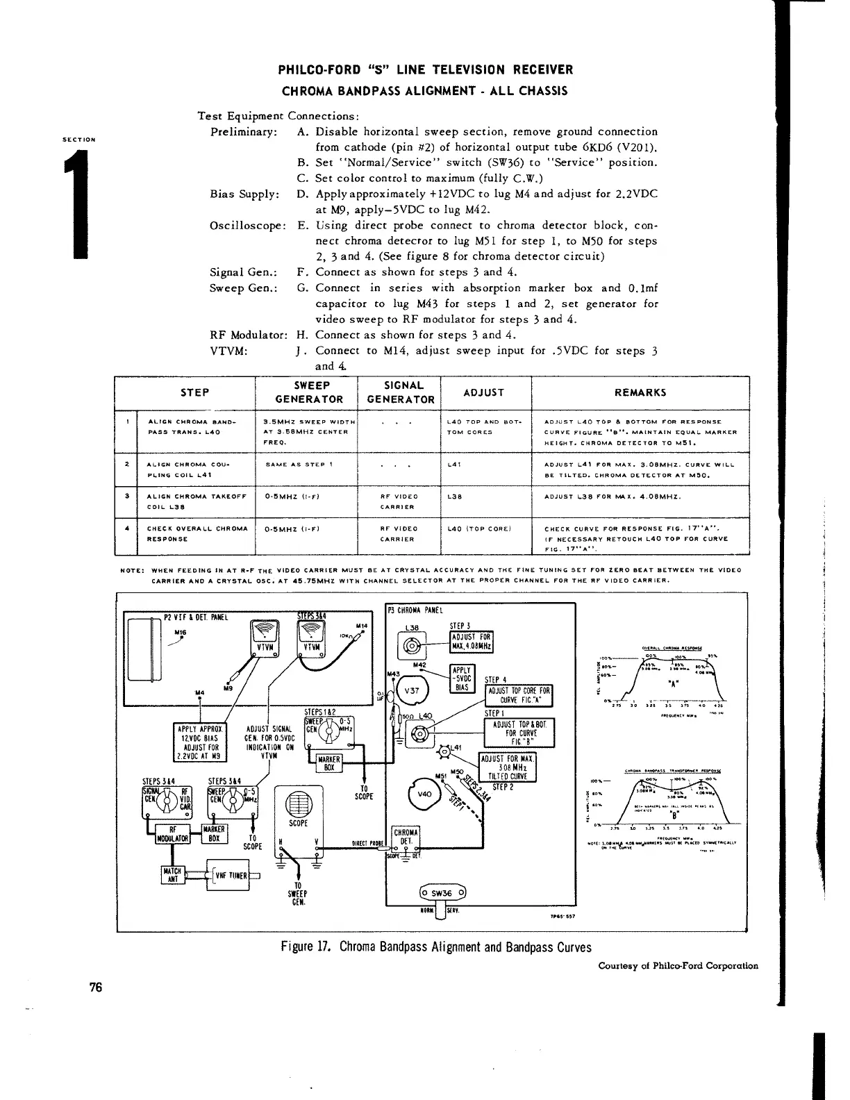 ALIGN CHROMA BAND ... 3.5MHz SWEEP WIDTH L40 TOP AND BOT• ADJUST L40 TOP 6: BOTTOM FOR RESPONSE