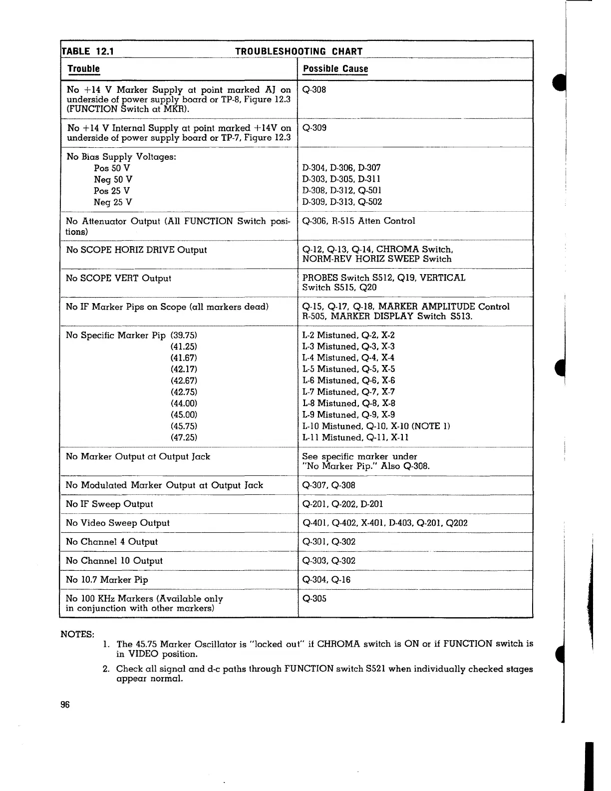 No Modulated Marker Output at Output Jack Q-307. Q-308