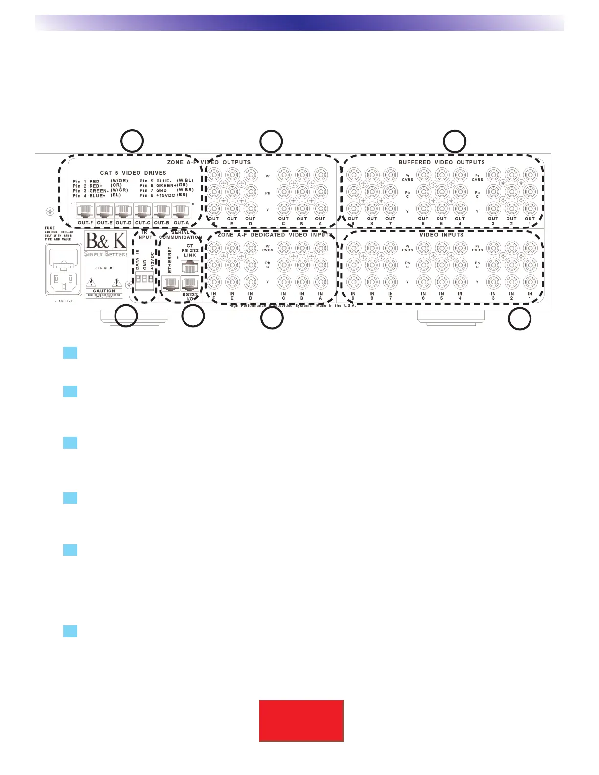 1 CAT5 Zone Video Outputs - Six zones of video output allow distribution with up to 1080P resolution.