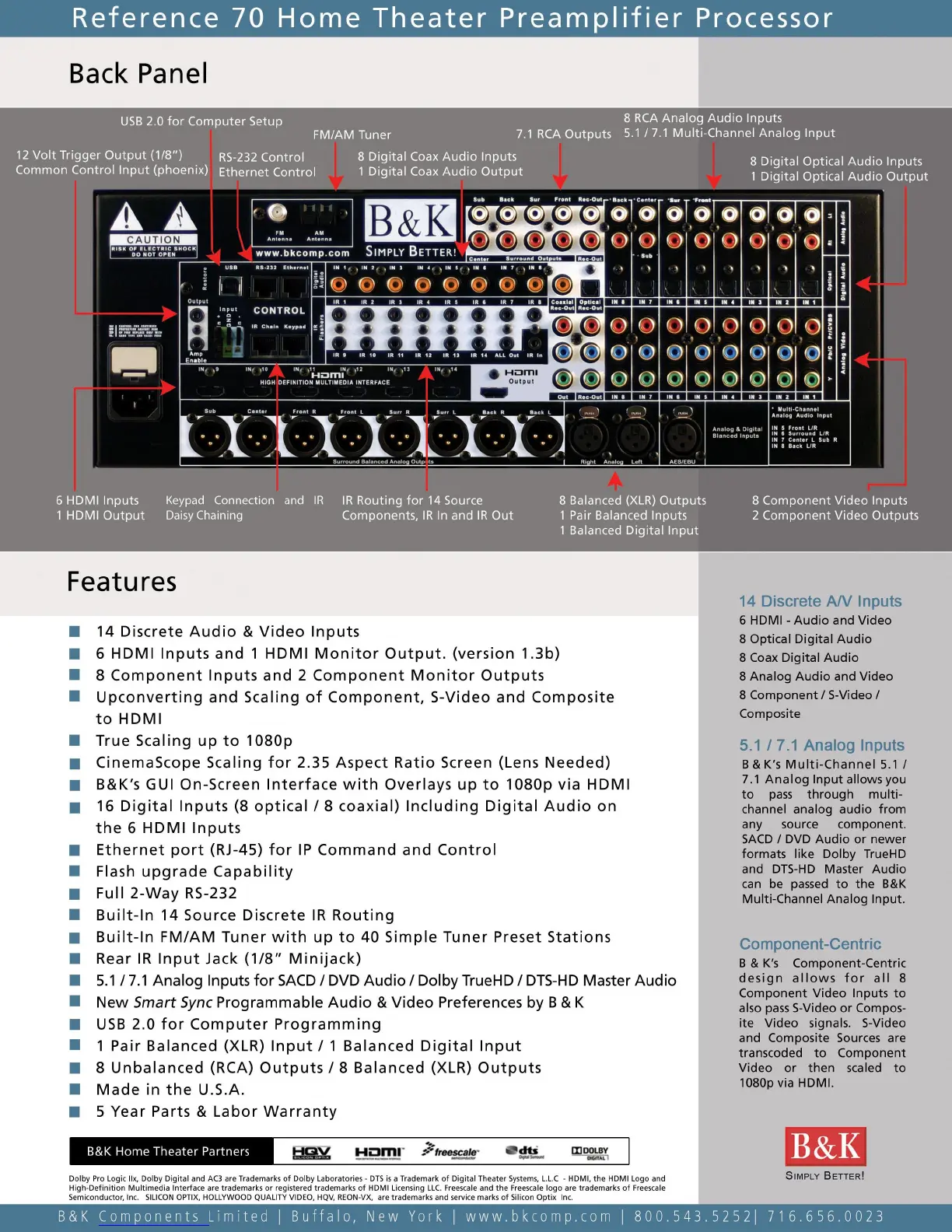 B&K REF 70 - Back Panel Overview; Connectivity Ports; Key Features; Audio and Video Inputs;Outputs