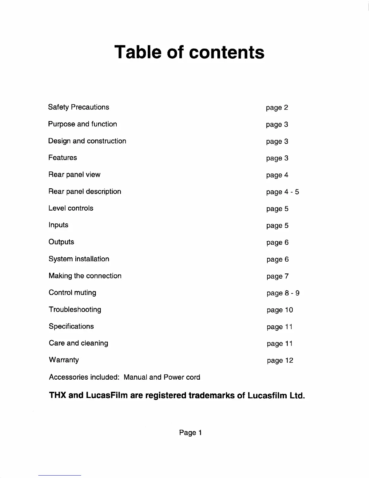 B&K TX4430 - Table of Contents