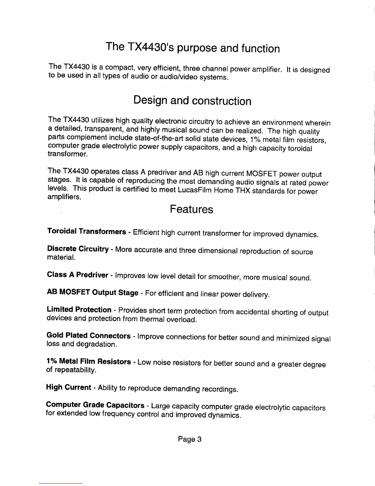 B&K TX4430 - Purpose and Function; Design and Construction; Features
