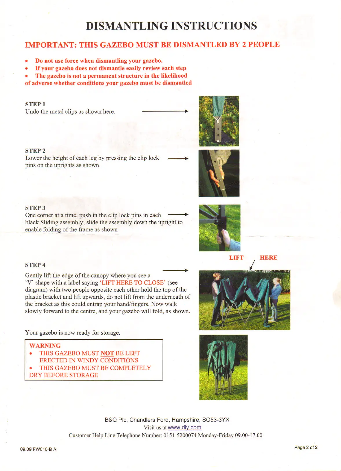IMPORTANT: THIS GAZEBO MUST BE DISMANTLED BY 2 PEOPLE