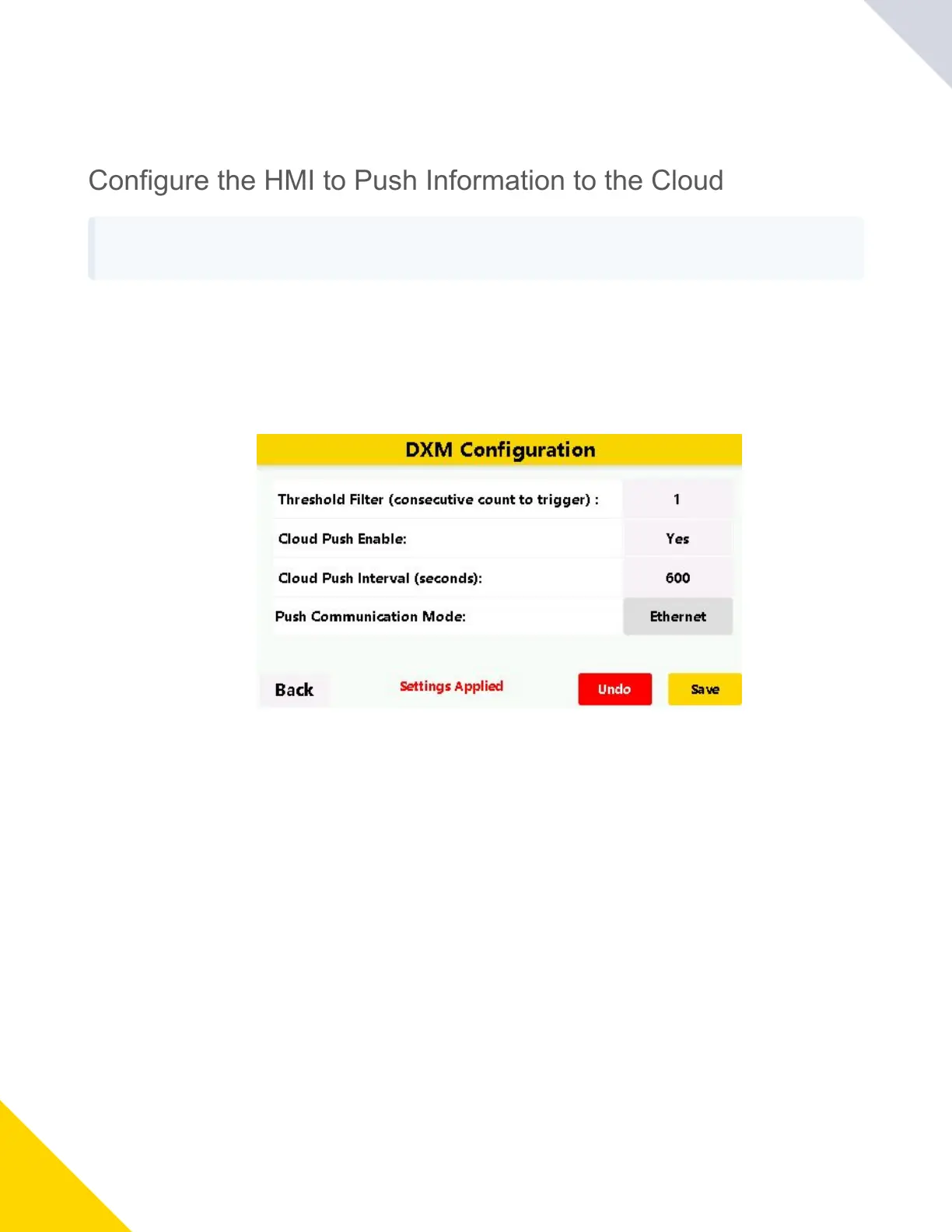 OntheHMI:GotoDXMUtilities›DXM Configurationtoenablecloudpushing.
