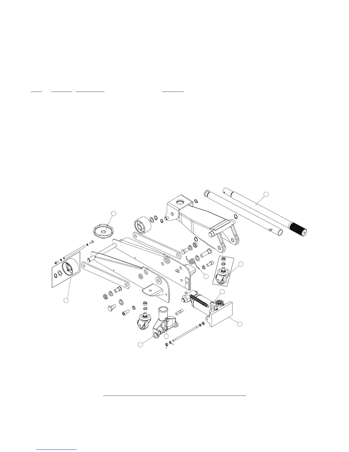 Not all components of the jack are replacement items, but are illustrated as a convenient reference of location and