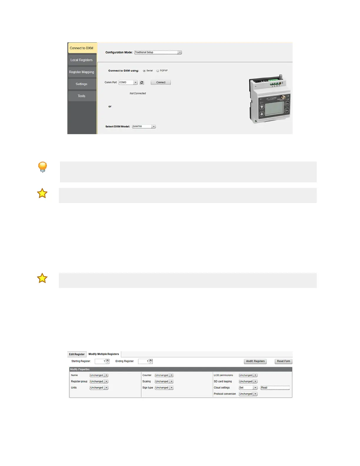 Important: Any model of DXM may connect to the configuration software regardless of which device model