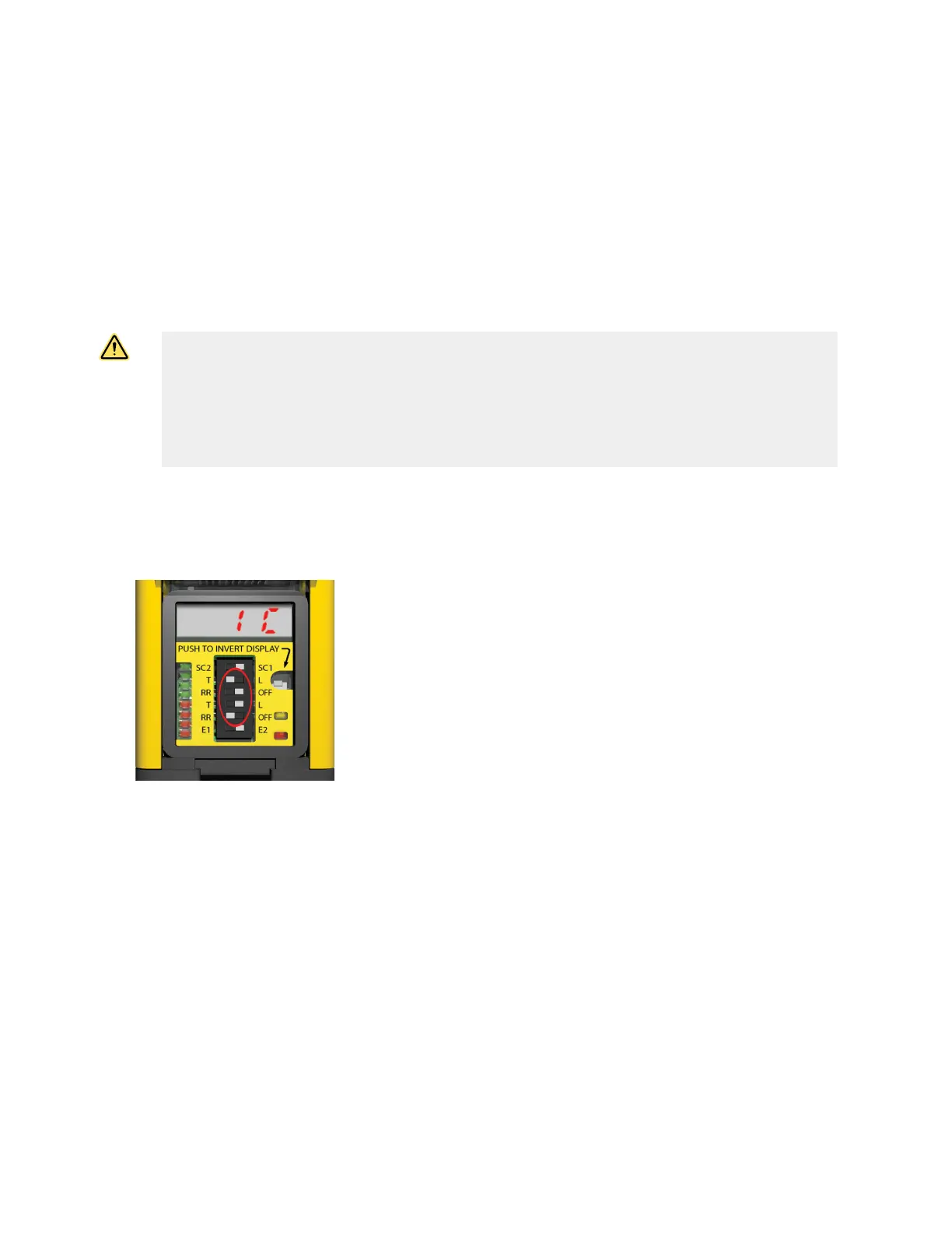 1. From either normal operation or a power OFF condition, set the second and fifth DIP switches (RR and T/L) both to