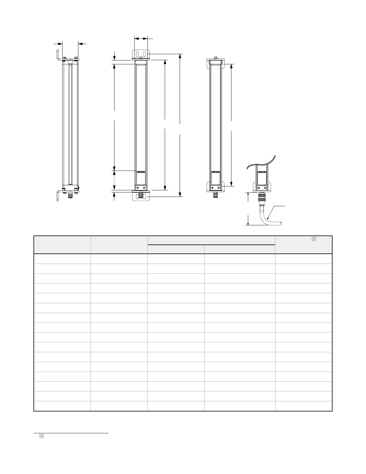 Emitter / Receiver Model Housing Length L1 Distance Between Bracket Holes Defined Area