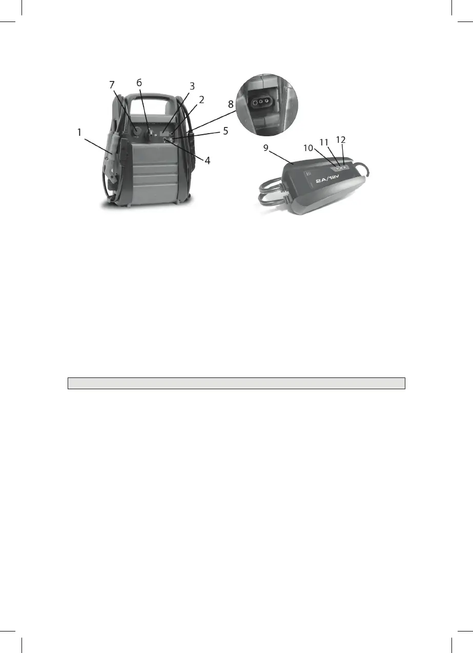 6. Botão de alimentação do arrancador – posição 0 ou 12V no Modelo 12V / 0, ou posição 12V ou
