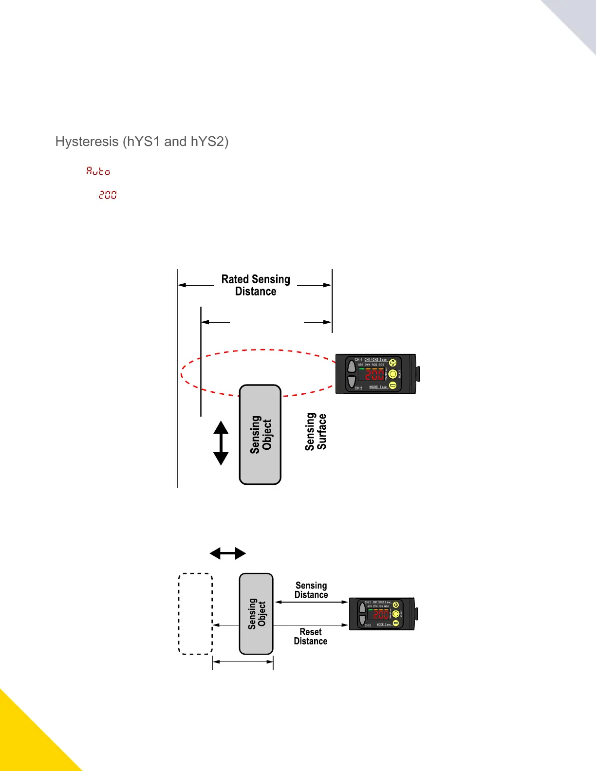 —Thesensorautomaticallyselectsarecommendedminimumhysteresisdistancerelativetothecurrentswitch
