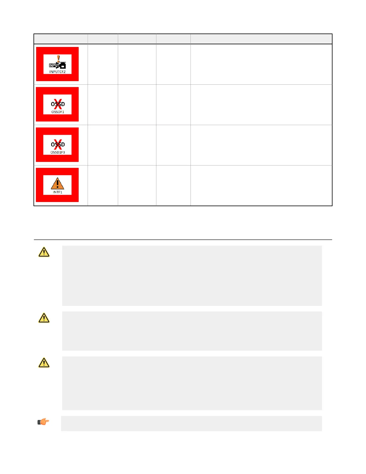 Icon Fault Code Device Status OSSD Status Description