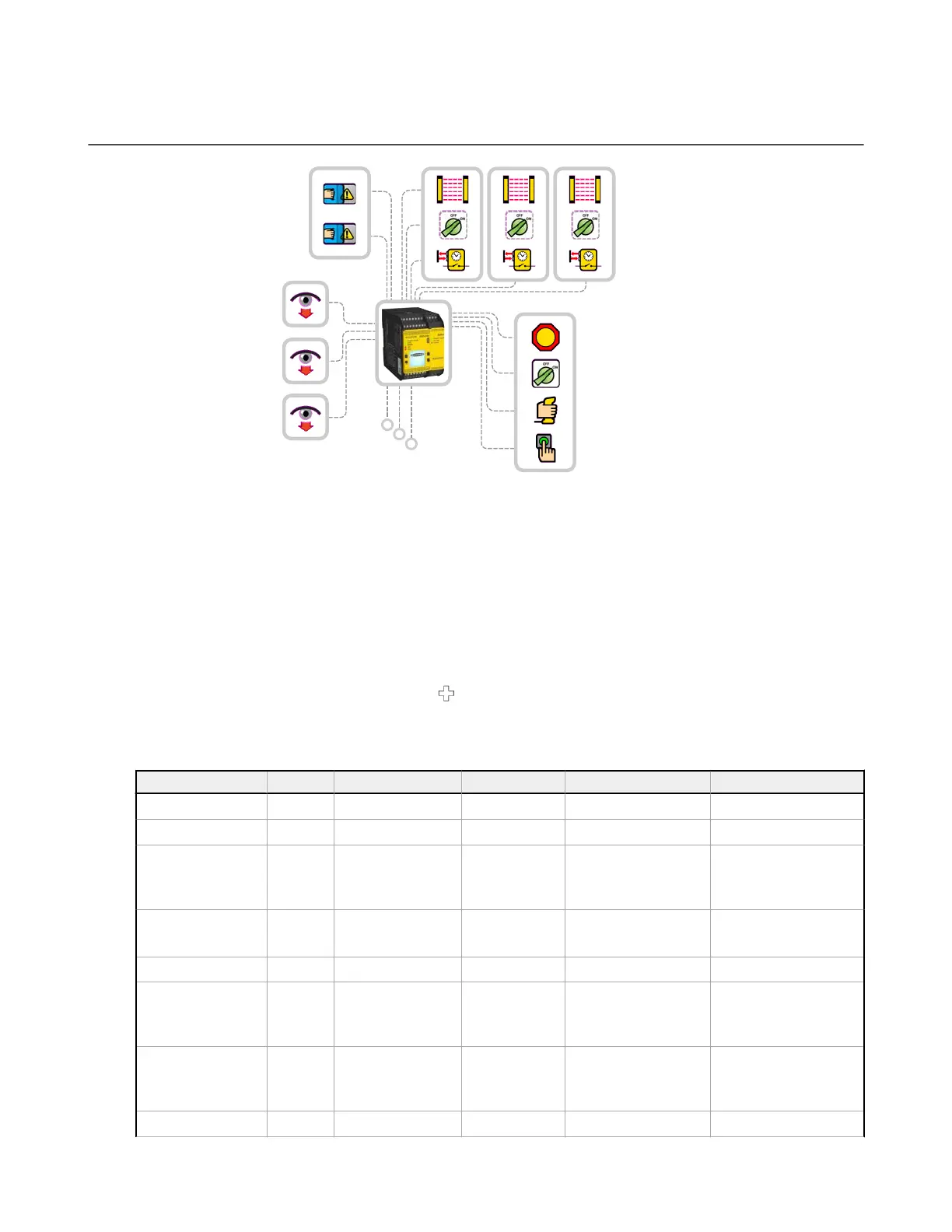 Input Module, three optical sensors (muting is added via the software), two interlock switches, a manual reset, and an