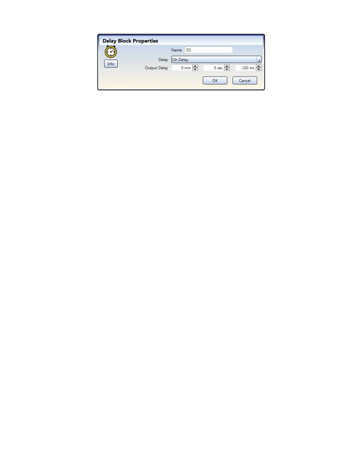 The Delay Block Properties window allows the user to configure the following: