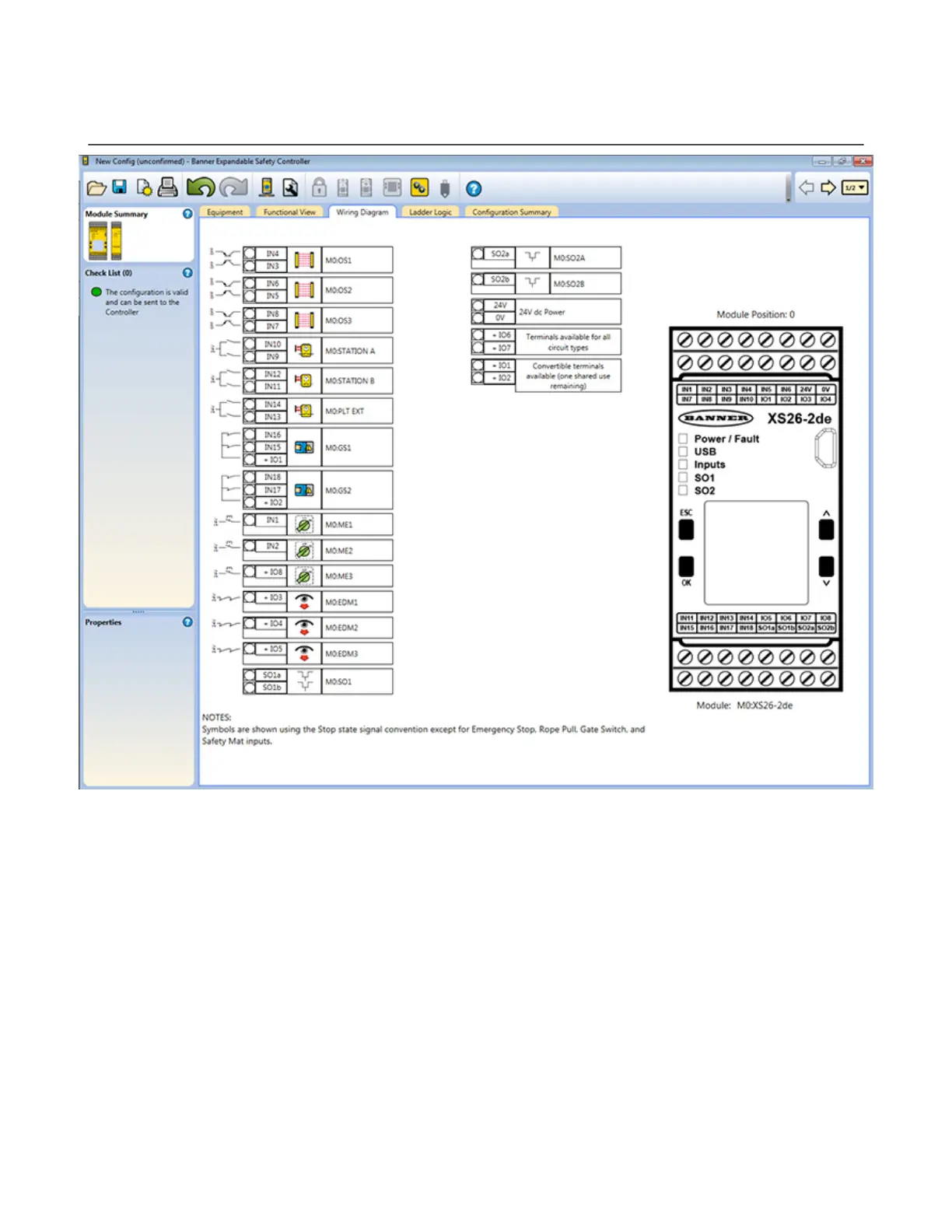 The Wiring Diagram tab shows the terminal assignments and the electrical circuits for the safety and non-safety inputs,