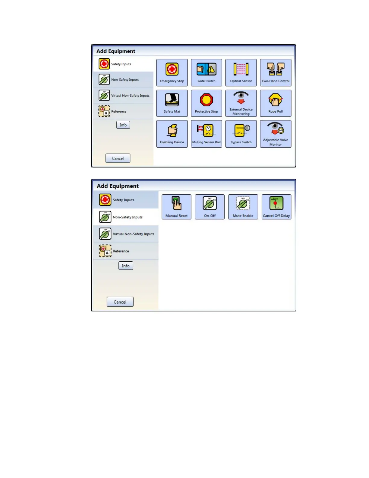 2. Click Safety Input or Non-Safety Input to add input devices: