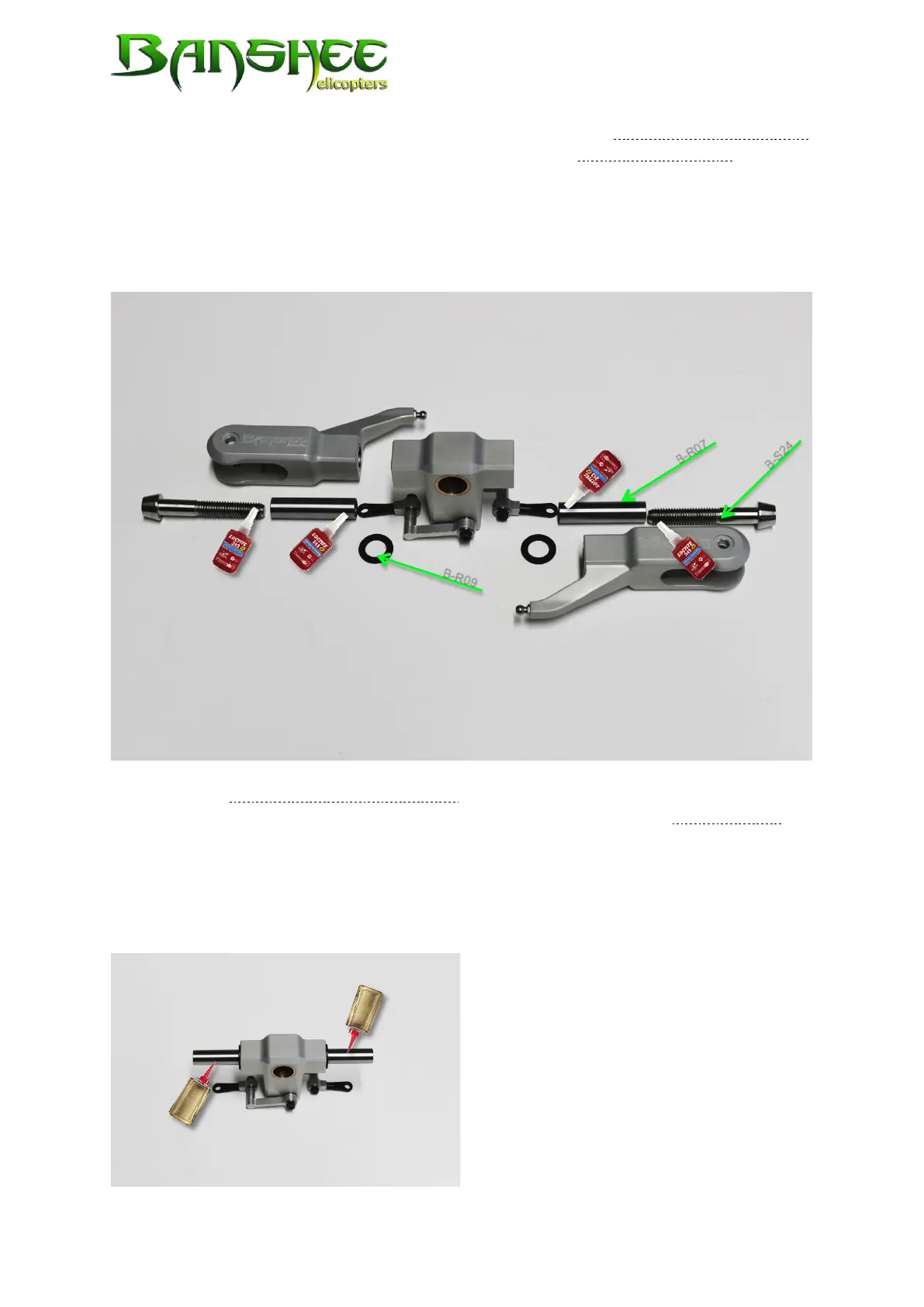 Continue with the assembly of the rotor head. Degrease the hollow feathering shafts,