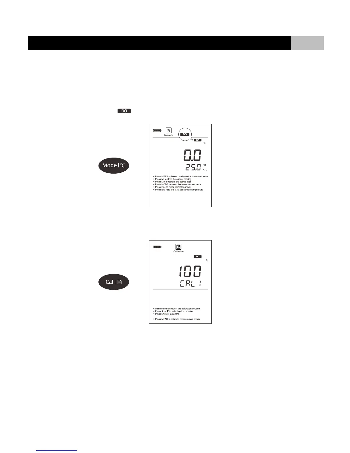 1.3 Press CAL key, the meter enters calibration mode, the display shows “100%/CAL1”.