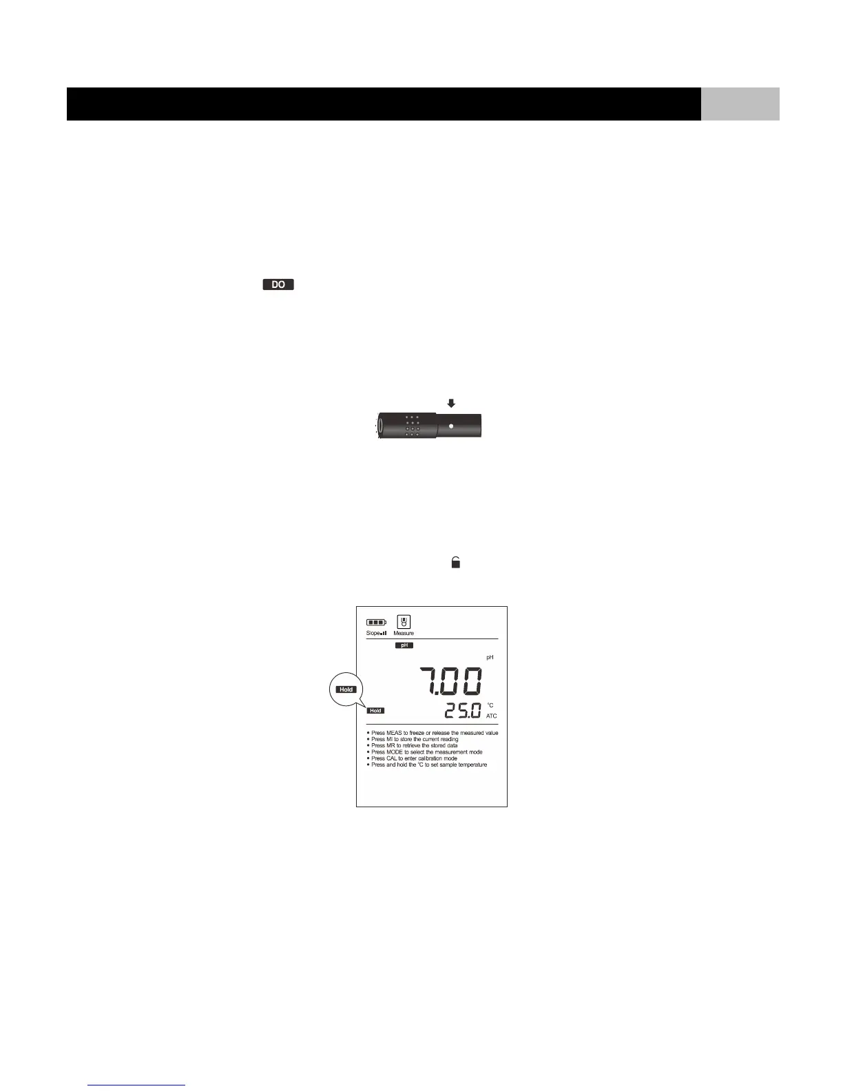 4. Submerse probe in the sample solution, make sure the temperature sensor on the probe is fully immersed.