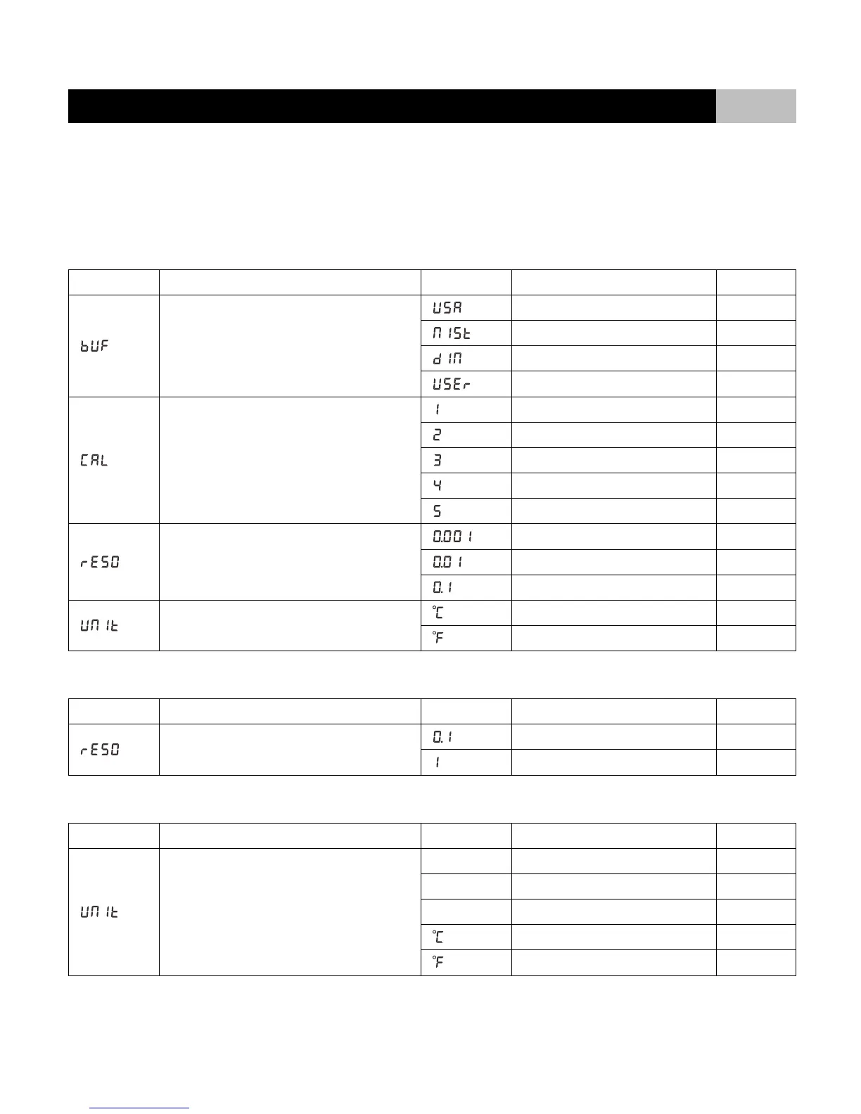 measurement requirements. In the different modes, the meter will show the corresponding options. For the general options, once it is changed that will