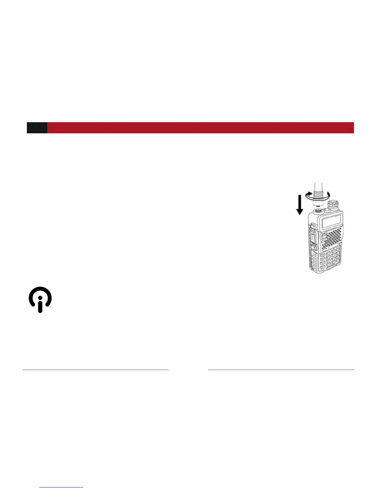 • Do not over-tighten your antenna to avoid damage to the connectors.