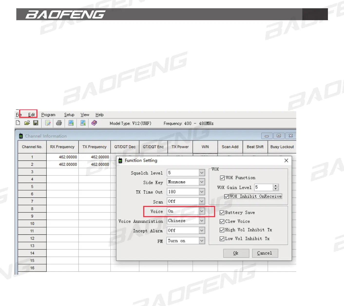 Feature” in the software. When choosing OFF, voice prompt turns off.