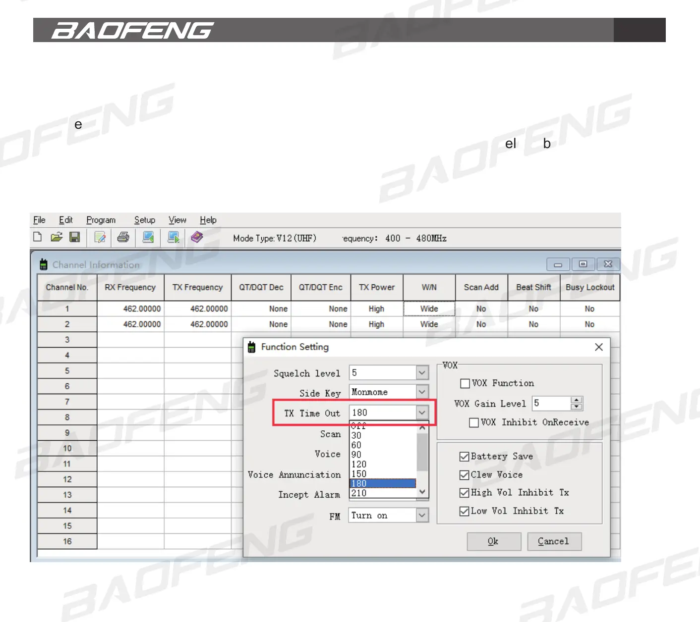 the transmitting time exceeds the TOT preset time, a beep will be heard and the radio will stop