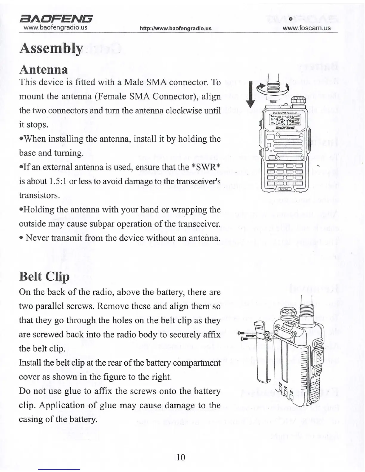 Baofeng BF-F9V2+ - Assembly; Antenna and Belt Clip Installation