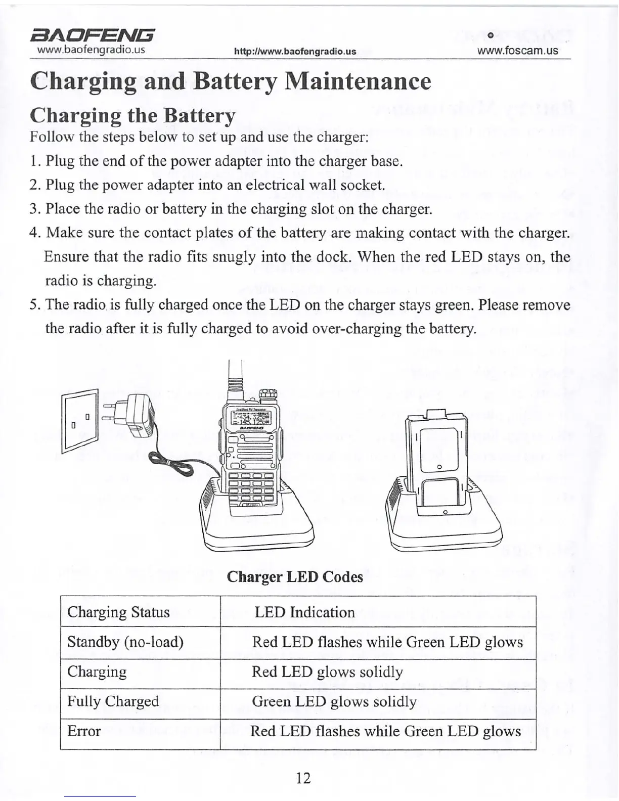 Baofeng BF-F9V2+ - Charging and Battery Maintenance; Charging the Battery