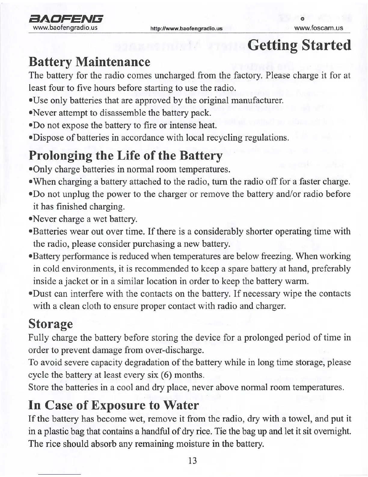 Baofeng BF-F9V2+ - Battery Care and Storage