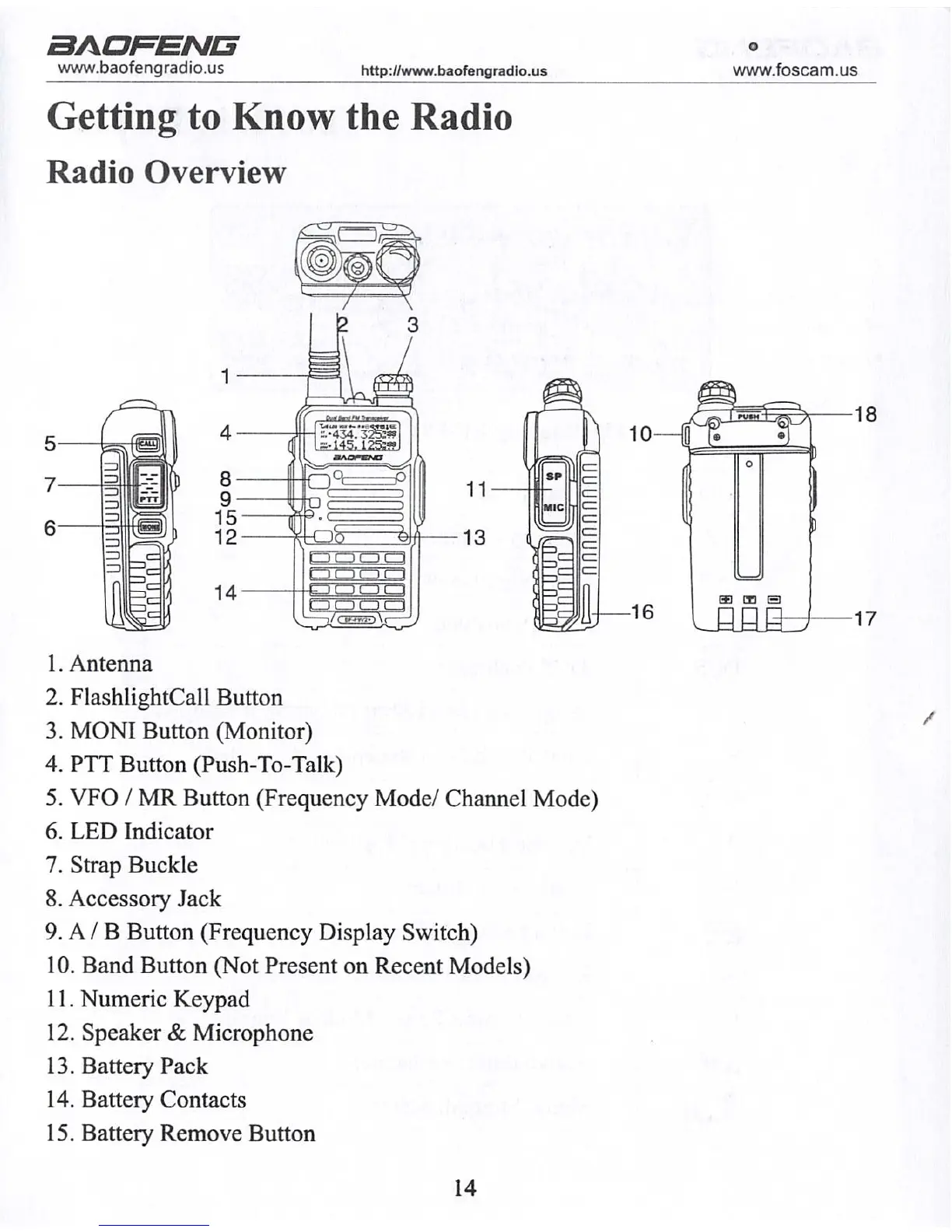 5. VFO / MR Button (Frequency Mode/ Channel Mode)