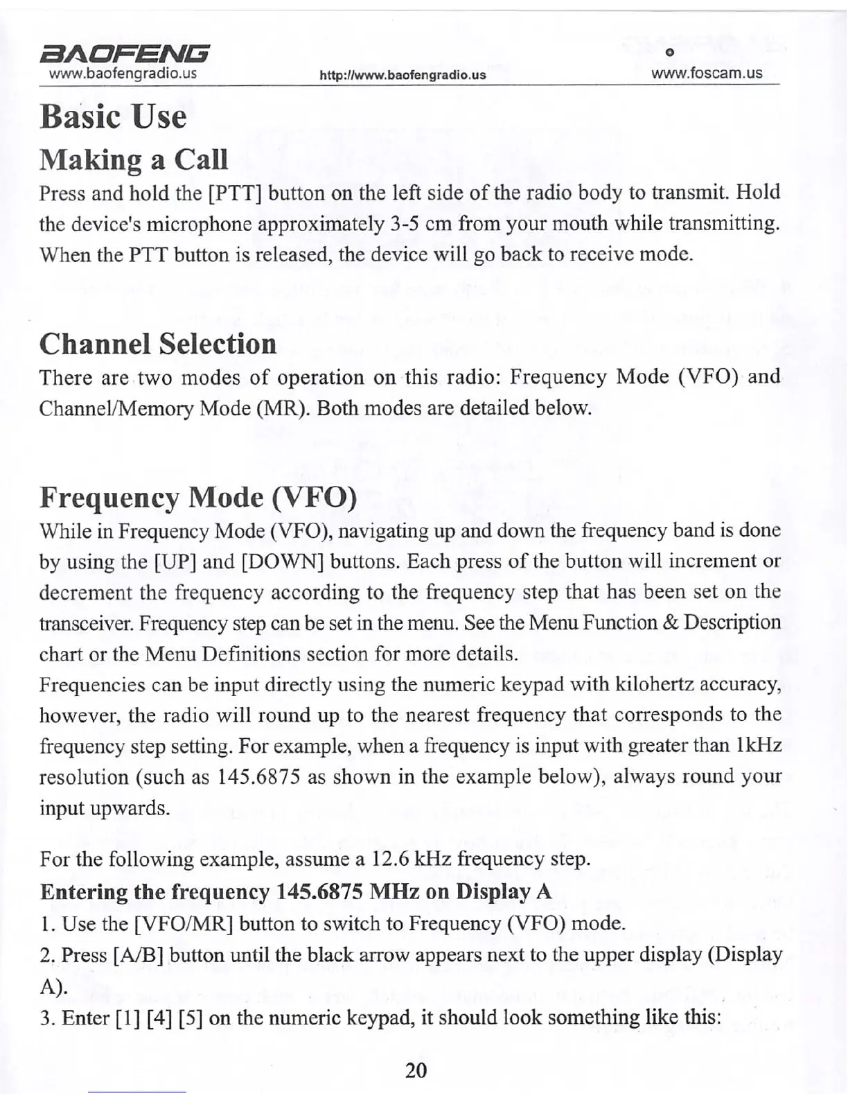 Baofeng BF-F9V2+ - Making Calls and Channel Selection