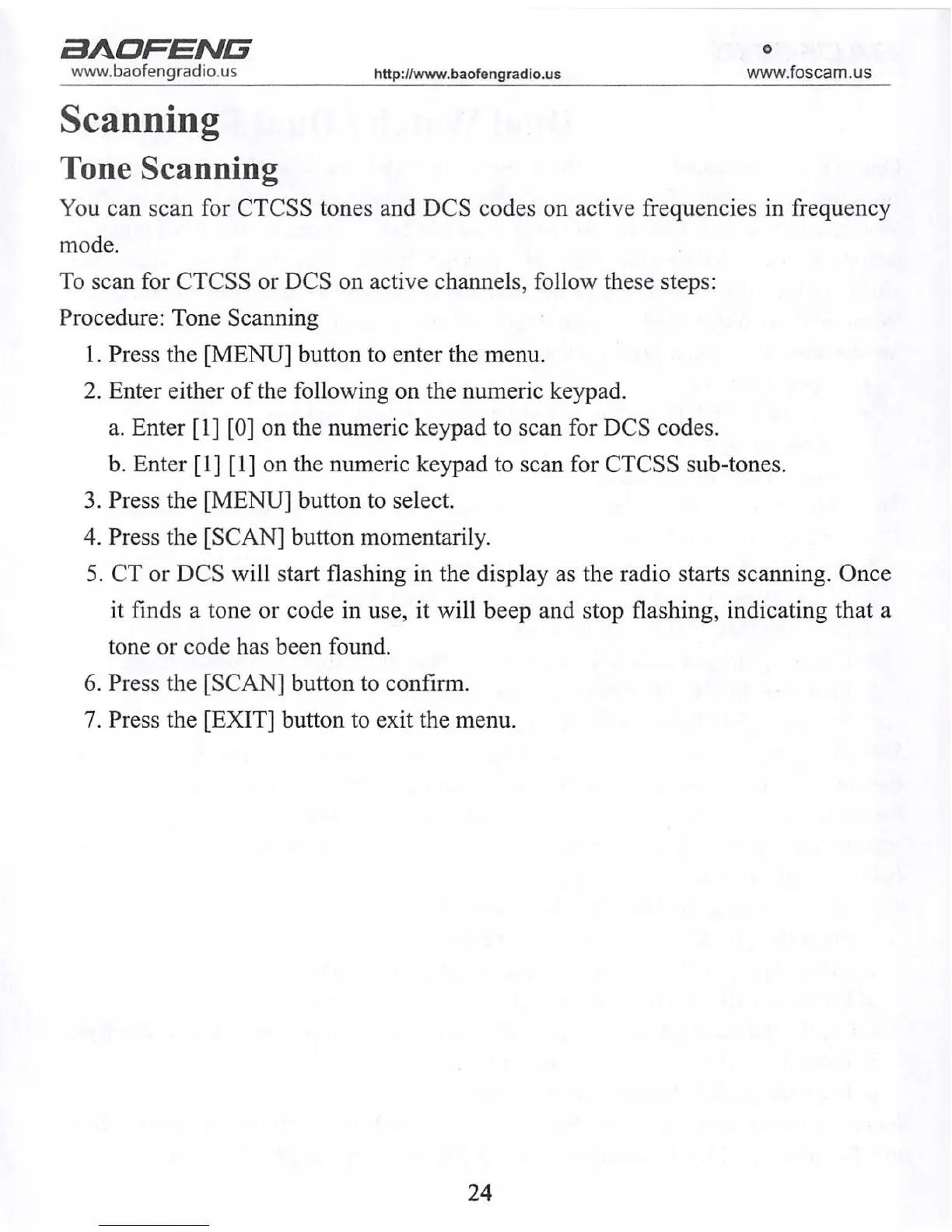 5. CT or DCS will start flashing in the display as the radio starts scanning. Once