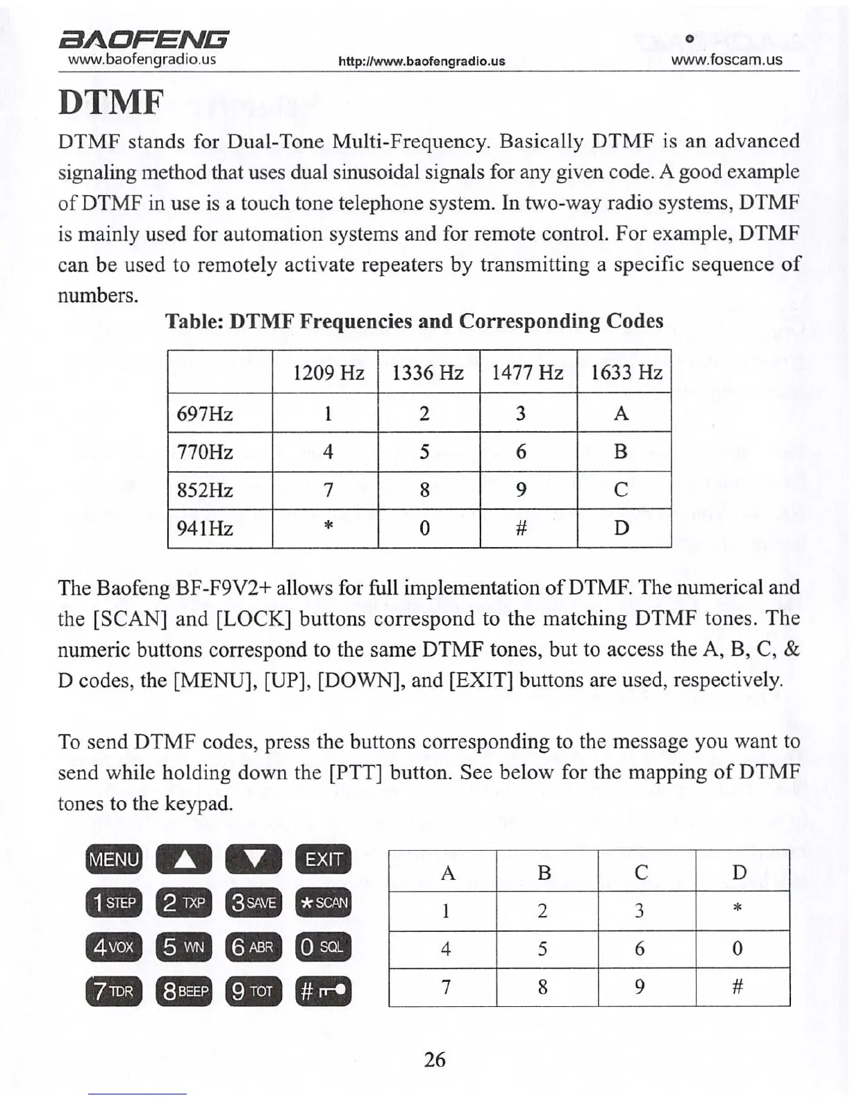 send while holding down the [PTT] button. See below for the mapping of DTMF