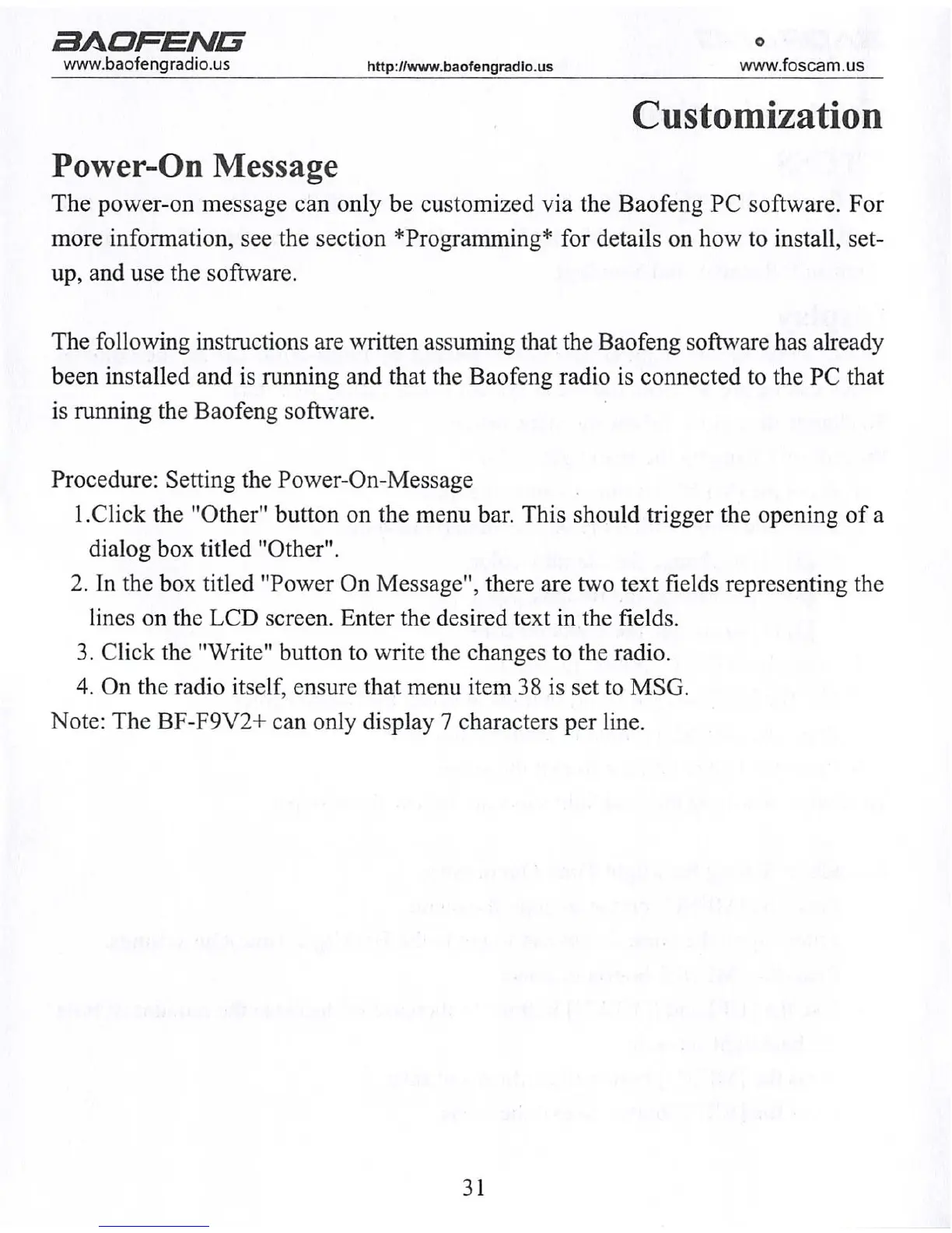 Note: The BF-F9V2+ can only display 7 characters per line.