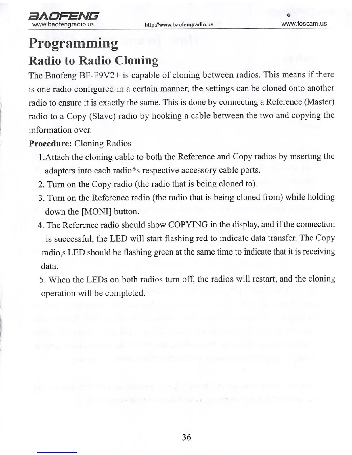 radio to a Copy (Slave) radio by hooking a cable between the two and copying the