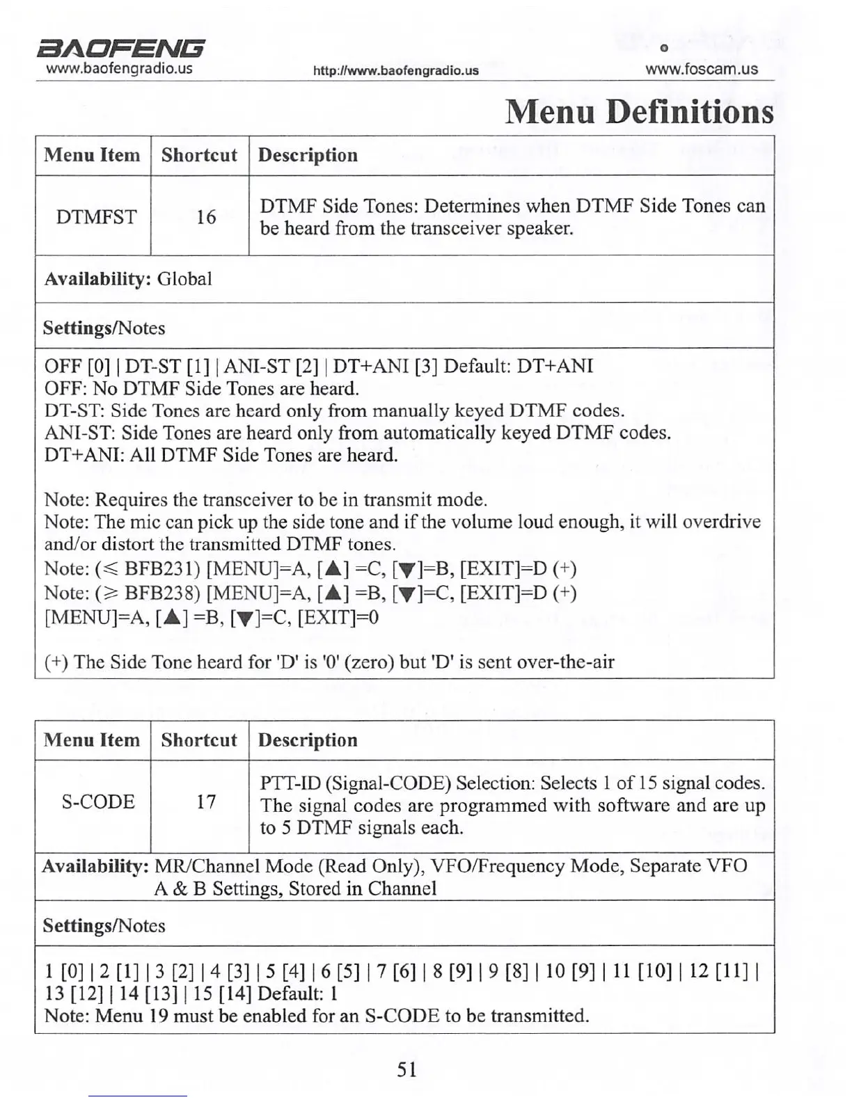 Note: Menu 19 must be enabled for an S-CODE to be transmitted.