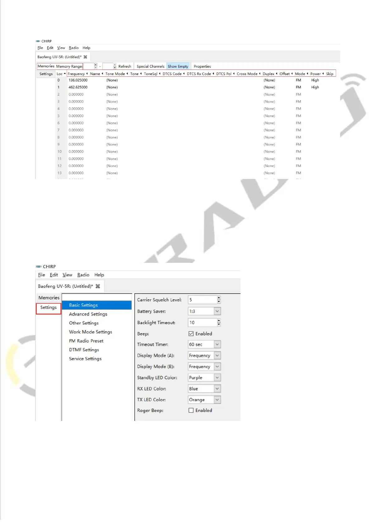 Baofeng BF-UV5R - Memories Configuration; Advanced Settings and Uploading