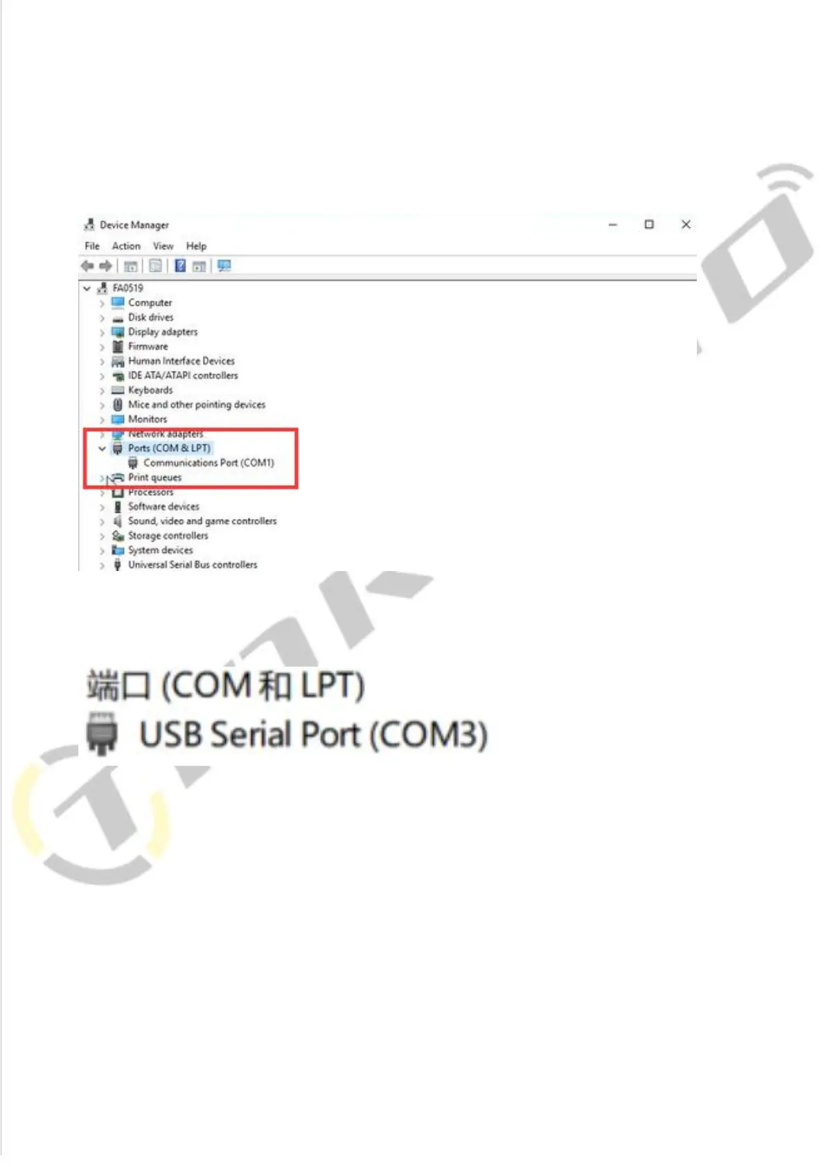 2.Open Device Manager, and unfold Port (COM & LPT) to check the existing