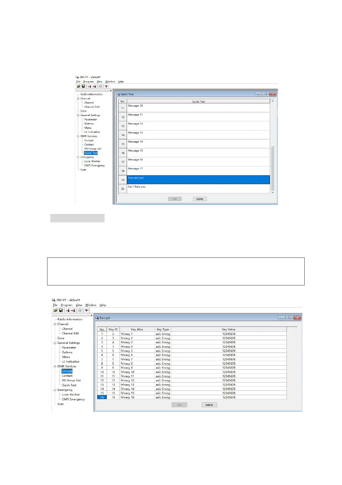 encryption password as you, avoiding other people hearing your call. Select ’Program’-> ‘DMR Services’ ->