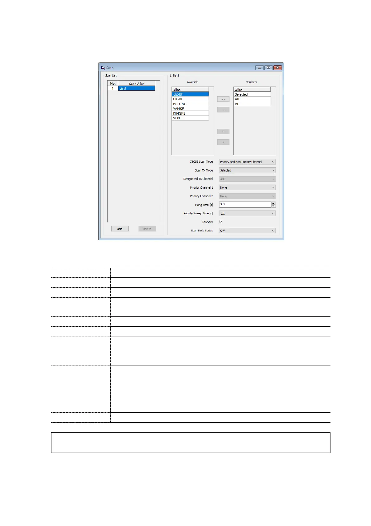 Talkback Determine if the user can transmit on the channel on which it sounds during the scan.